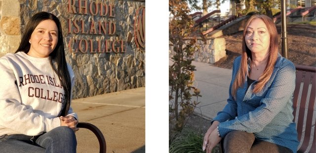 Larissa Guido Swenson (left) wins student teaching scholarship and alumna Lora Calise (right) named RIFLA Teacher of the Year.